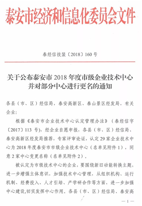 日前,泰安市經(jīng)濟(jì)和信息化委員會(huì)公布了2018年度市級(jí)企業(yè)技術(shù)中心名單,山東天路重工科技有限公司技術(shù)中心成功入選。