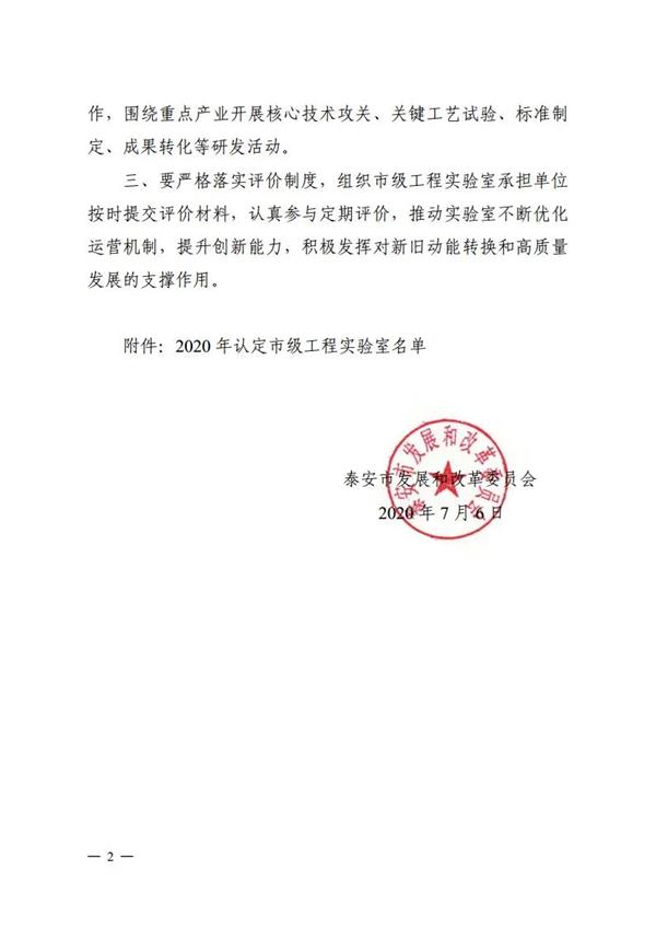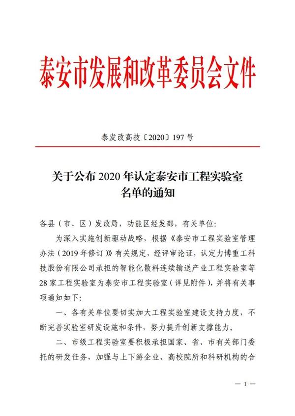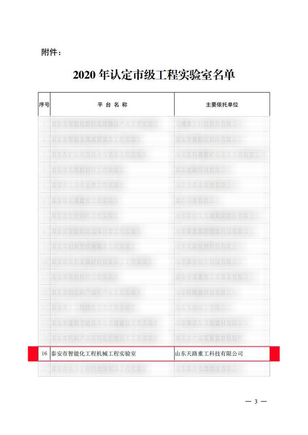 近日,泰安市發(fā)展和改革委員會(huì)公布2020年泰安市工程實(shí)驗(yàn)室名單,其中包括山東天路重工科技有限公司承擔(dān)的泰安市智能化工程機(jī)械工程實(shí)驗(yàn)室等。