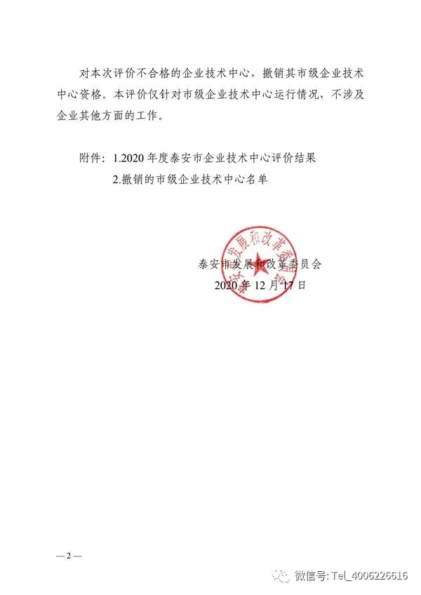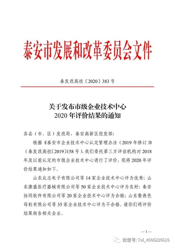2020年12月17日,泰安市發(fā)展和改革委員會(huì)公布了2020年度泰安市企業(yè)技術(shù)中心認(rèn)定評(píng)審結(jié)果的通知,山東天路重工科技有限公司榮列其中,被認(rèn)定為市級(jí)企業(yè)技術(shù)中心,評(píng)審結(jié)果為良好。