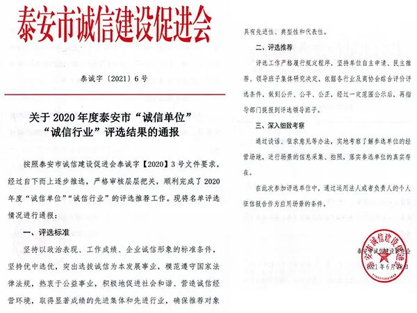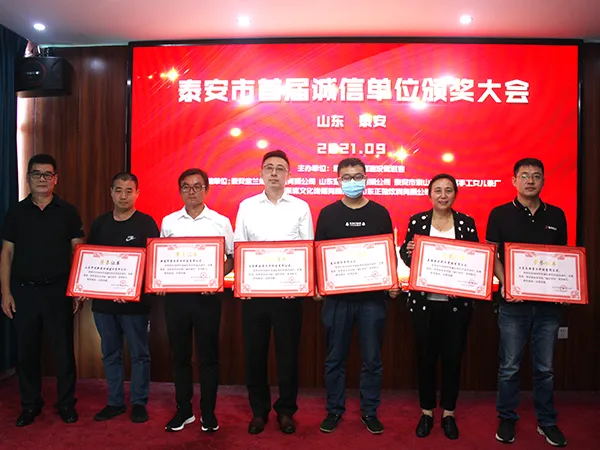2021年9月9日上午,2020年度泰安市首屆“誠信單位”頒獎儀式在泰安希岸酒店舉行。